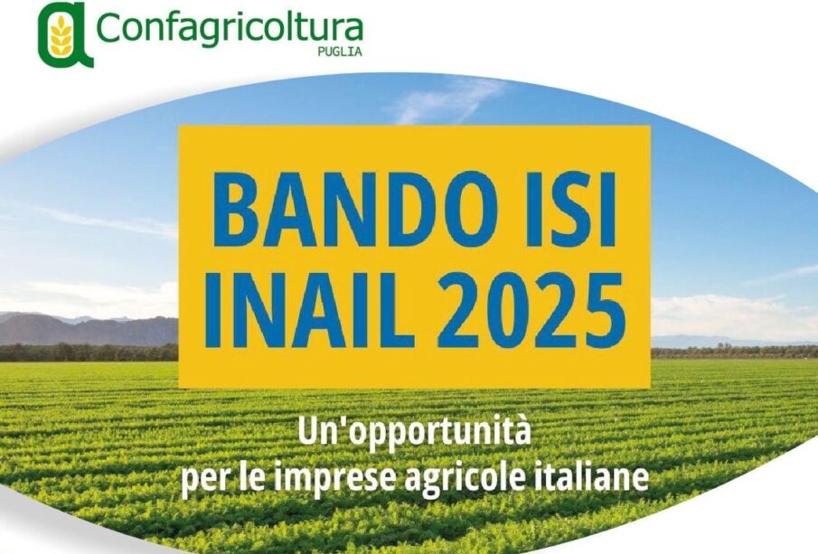 Confagricoltura Puglia organizza l’incontro “Bando ISI INAIL 2025 – Un’opportunità per le imprese agricole italiane”, dedicato alle opportunità offerte dal bando per sostenere investimenti in prevenzione e sicurezza nelle aziende del comparto. L’appuntamento è per giovedì 5 marzo 2026, ore 15.00, nella sede regionale di Confagricoltura Puglia (via Amendola 166/5 – Bari), con partecipazione in modalità mista: in presenza e con collegamento da remoto.